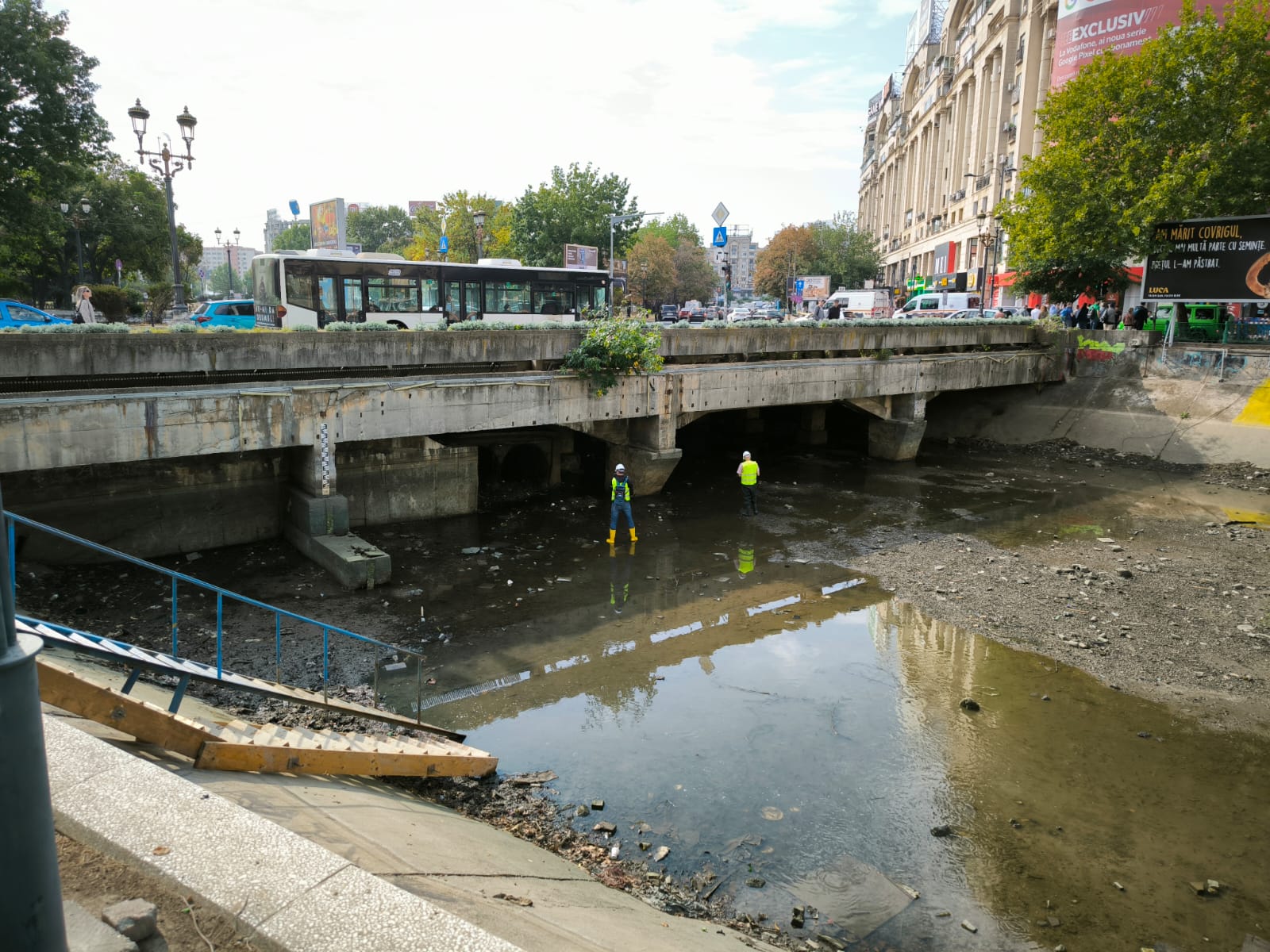 În imaginea recentă se pot observa conductele de preaplin montate pentru a prelua eventualul surplus de debit al râului Dâmbovița.
