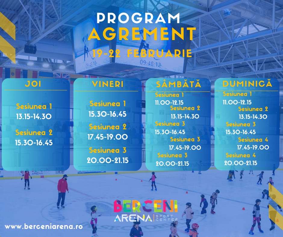 Berceni Arena anunță organizarea a 15 sesiuni de patinaj pe parcursul acestui final de săptămână, în cadrul unui program de agrement destinat publicului larg. Activitățile se vor desfășura pe...