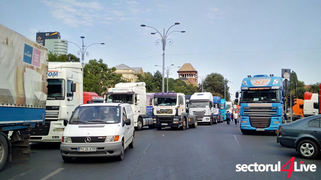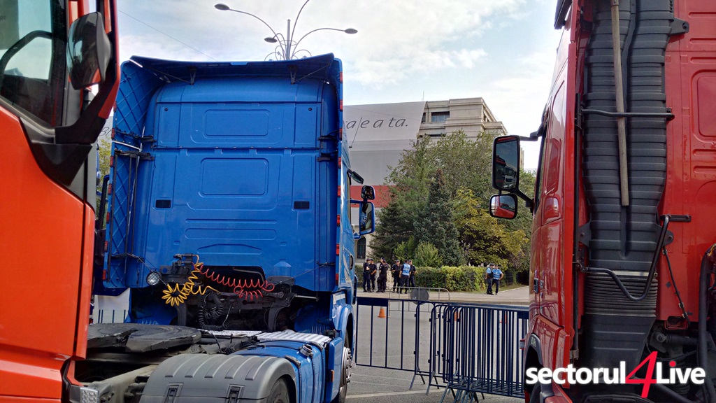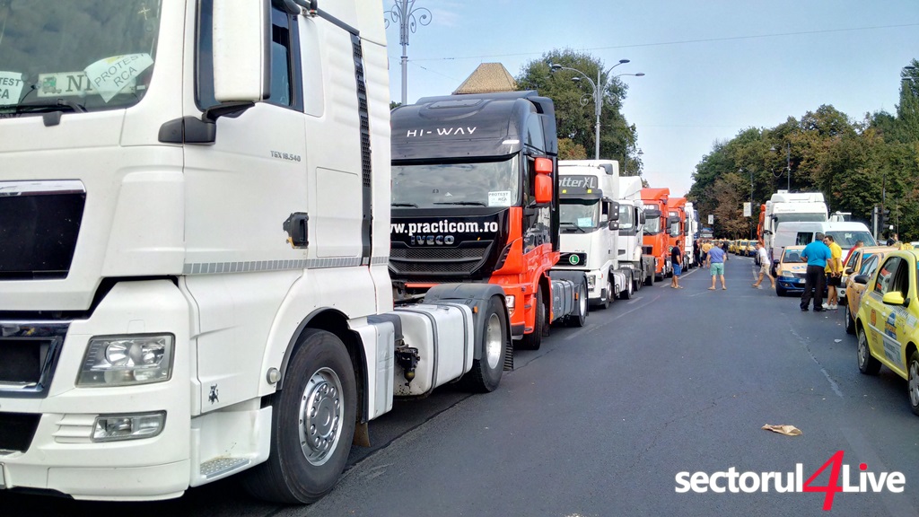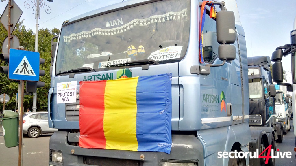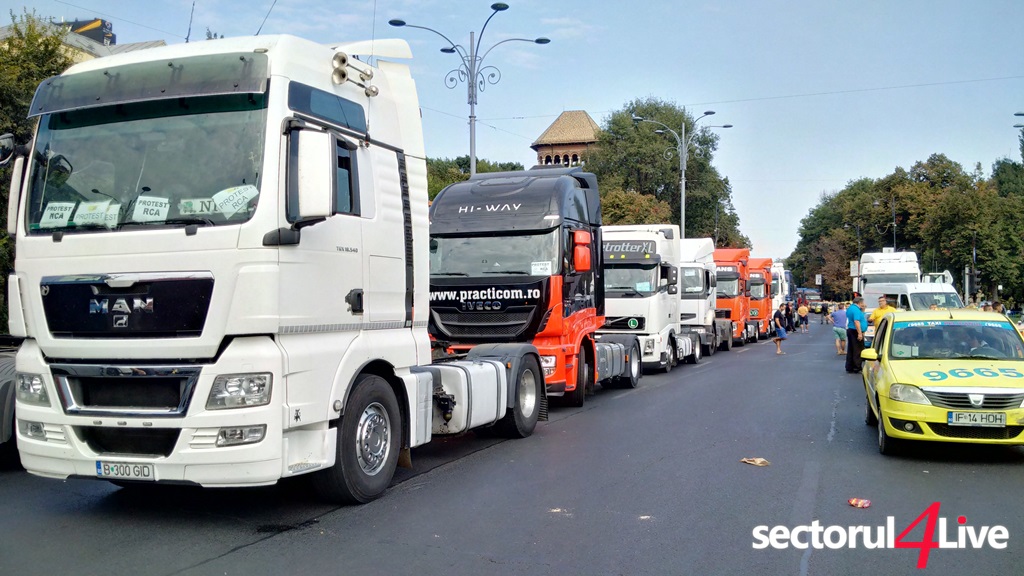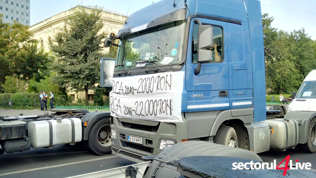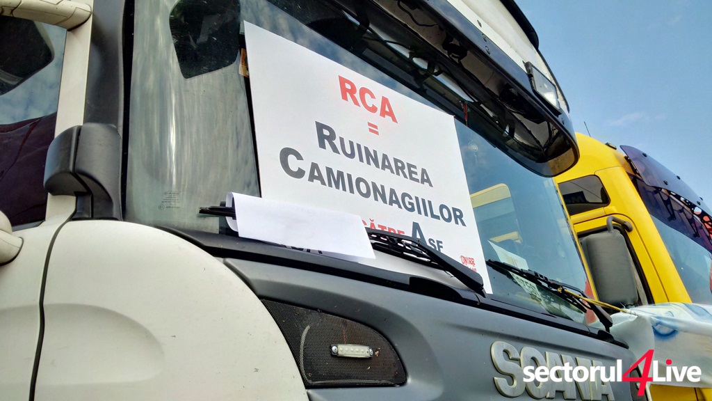 Protestatarii sunt veniti din toata tara. Ei claxoneaza si afiseaza pancarte pe care scrie: “RCA = Ruinarea camionagiilor”, “Nu omorati si transportul”, “RCA 2010 – 2.000 Ron, RCA 2016 – 22.000 Ron”. Mai spun ca in Ungaria asigurarea costa 700 de euro si sunt hotarati sa protesteze pana cand vor obtine scaderea preturilor la RCA pana la un nivel rezonabil.