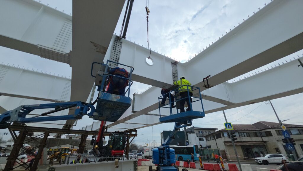Potrivit postării, după finalizarea montării tablierului metalic pe cele două rampe ale pasajului, constructorul a demarat lucrările la sistemul de iluminat.